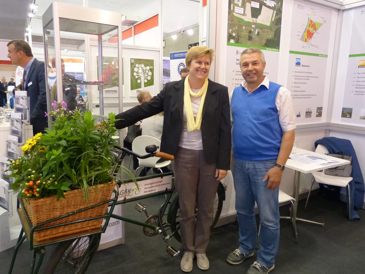 Den Auftakt bildete Herr Edgar Fiedler, Ansprechpartner der AGFK BB beim Schirmherr, dem Ministerium für Infrastruktur und Landesplanung des Landes Brandenburg (MIL). Er war erfreut über die geschickte Platzierung des historischen Rades als Werbeträger für die AGFK BB am Mittelpunkt des Gemeinschaftsstandes. Frau Oberbürgermeisterin Dr. Dietlind Tiemann nutze die Gelegenheit um über anstehende Verbesserungen für den Fahrradverkehr in Brandenburg an der Havel zu informieren. Frau Ministerin Kathrin Schneider und Herr AbtL. Egbert Neumann aus dem MIL, Vertreter des Ausschusses für Infrastruktur und Landesplanung  des Landtags Brandenburg und später Herr Hendrik Fischer, Staatssekretär im Ministerium für Wirtschaft und Energie betonten die Bedeutung des Radverkehrs im Land Brandenburg und in den Kommunen.