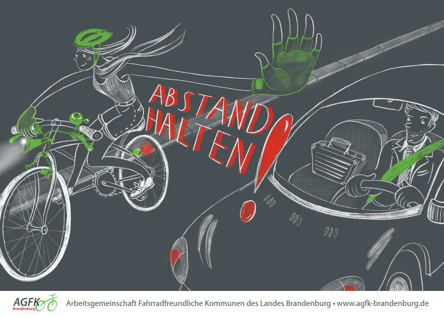 Pünktlich zum Beginn der Fahrradsaison führt die AGFK-BB eine Verkehrssicherheitskampagne durch, um Verkehrsteilnehmende aufzuklären und zukünftig Unfallrisiken und Konfliktpotenziale zwischen Radfahrenden und motorisierten Verkehrsteilnehmern zu minimieren. Der UDV (Unfallforscher der Versicherer) sowie der ADFC (Allgemeiner Deutscher Fahrrad-Club e.V.) empfehlen die „nonverbale“ Kommunikation im Hinblick auf den „lebensrettenden Schulterblick“ und die Einhaltung des „lebensrettenden Überholabstandes“ durch Kampagnen.
