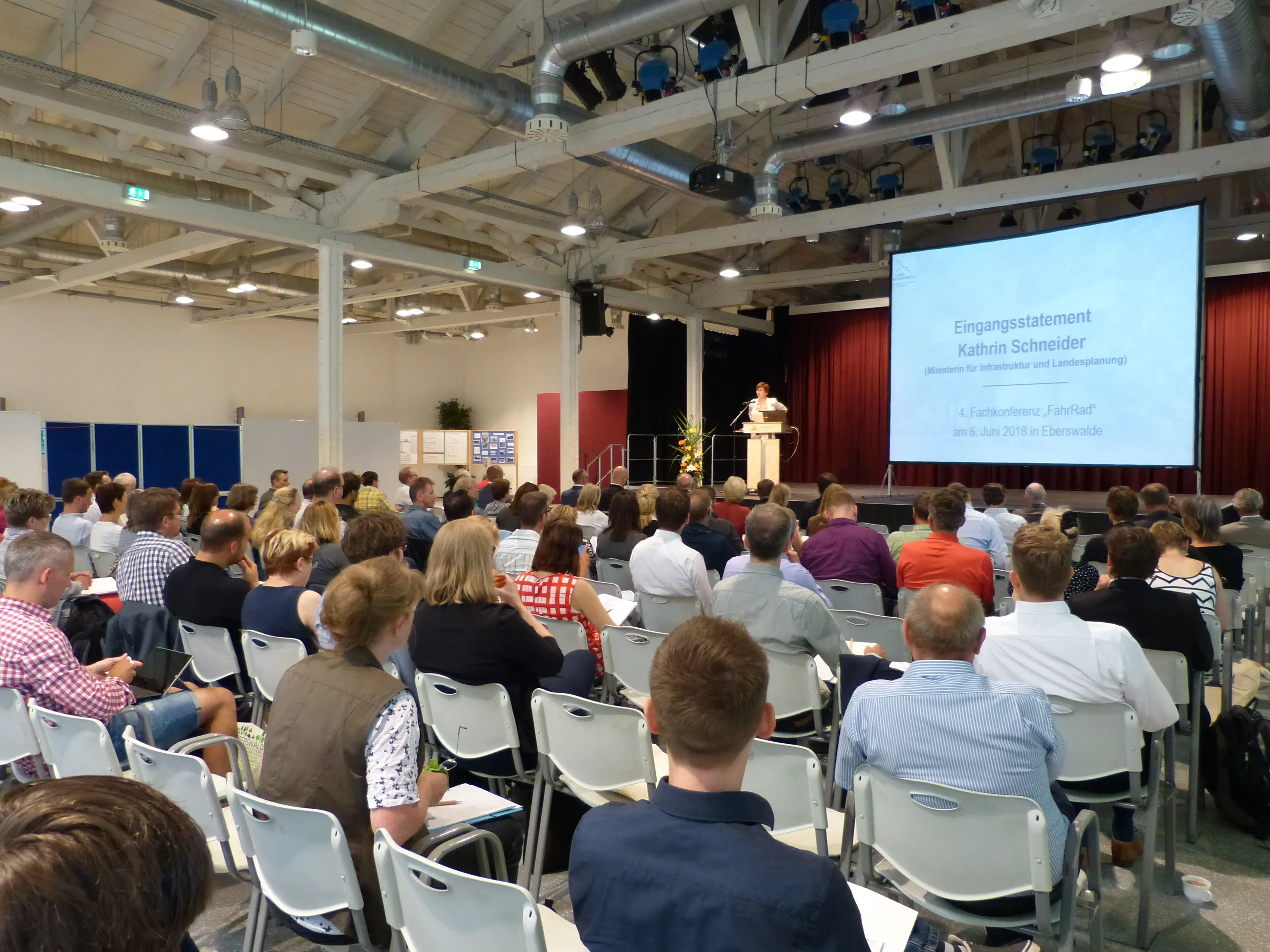 Die 4. Fachkonferenz FahrRad im Land Brandenburg, durchgeführt am 06. Juni 2018 in Eberswalde, fand mit mehr als 100 Teilnehmern regen Zuspruch. Die Veranstaltung unter Schirmherrschaft der Ministerin für Infrastruktur und Landesplanung, Frau Kathrin Schneider, bot eine Vielzahl interessanter Vorträge zu den Themen Klima und umweltfreundliche Mobilität, Bildung und Integration sowie Verkehrssicherheit.