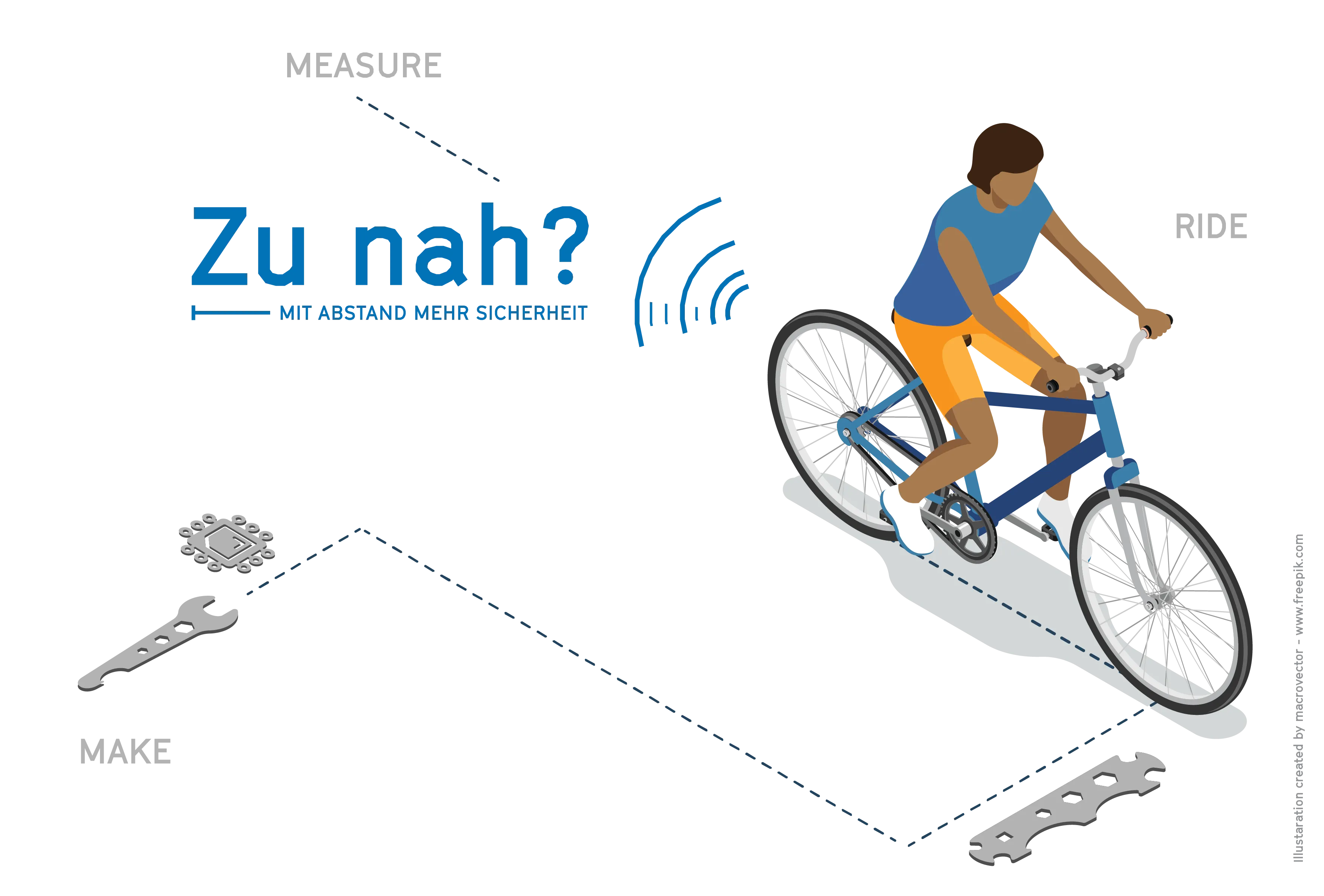Das Projekt „Zu nah?“ hat das Ziel, eine konkrete Fragestellung im Straßenverkehr zu beantworten: Wie nah werden Fahrradfahrer:innen von PKWs bzw. LKWs tatsächlich überholt? Da bei zu geringem Überholabstand Radfahrende gefährdet sind und es zu Unfällen kommen kann, gilt laut Straßenverkehrsordnung (StVO) beim Überholen von Fahrrädern ein Mindestabstand von anderthalb Metern (innerorts) bzw. zwei Metern (außerorts). Vielen ist gar nicht bewusst, dass mit einem zu geringen Abstand Radfahrende gefährdet werden bzw. dass es diese Vorgaben überhaupt gibt. Aktuell kontrolliert die Polizei diese Regelverstöße nicht.