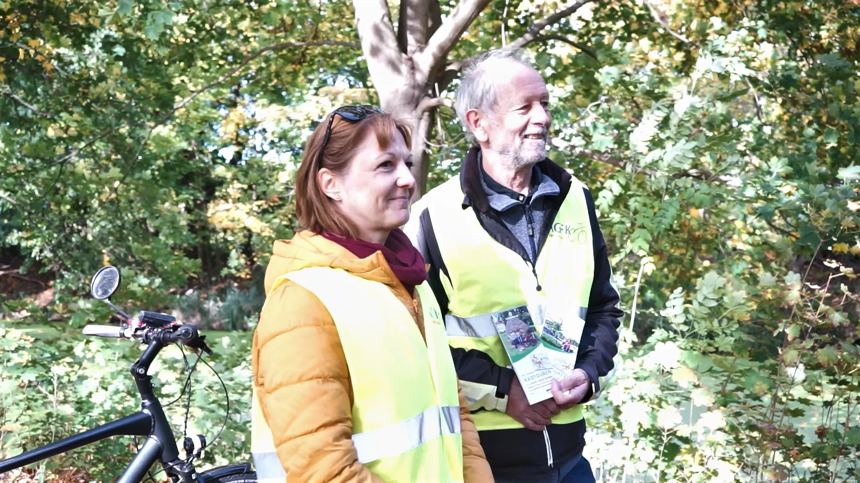 Die Radverkehrsbeauftragten Dana Klaus (Tourismusverband Dahme-Seenland e.V.) und Wolfgang Schwerin (Landkreis Dahme-Spreewald) präsentieren die Arbeit der AG Rad im Rahmen von Aufnahmen für die zweite Folge des Infofilms der AGFK Brandenburg (Foto und Beitragsbild: Torsten Wolter, AGFK-BB).