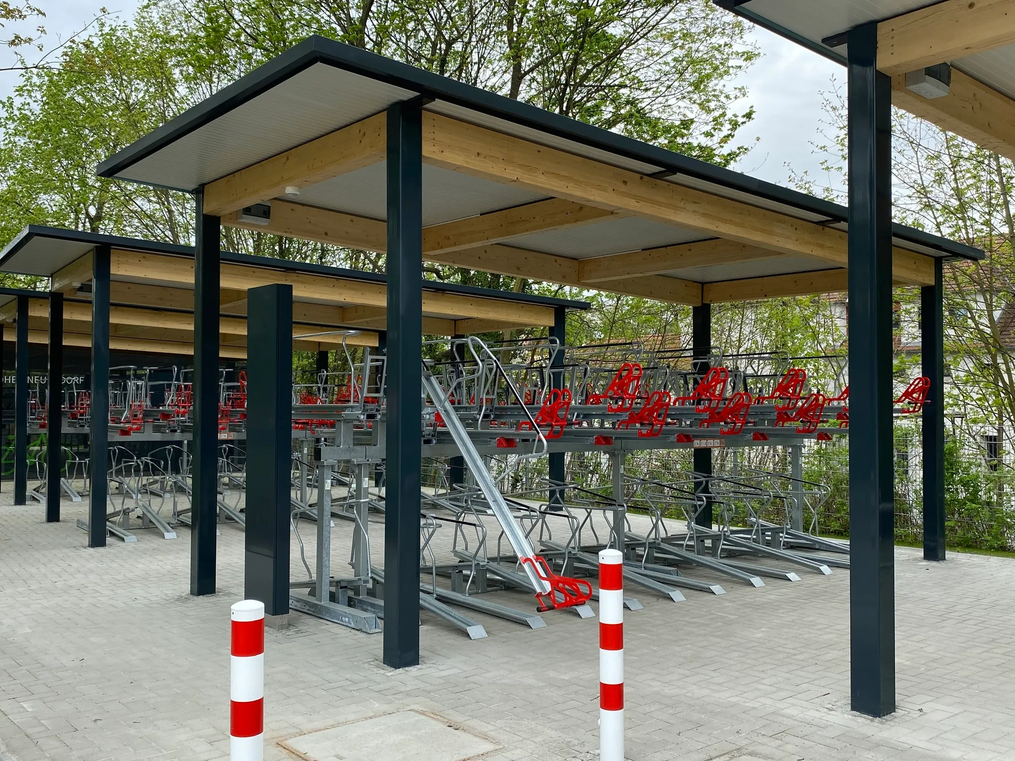 Mit dem Neubau erhöhte sich nicht nur die Gesamtzahl der Stellplätze auf 287. Um die große Nachfrage an besonders sicheren Plätzen zu erfüllen, gibt es zudem eine Sammelschließanlage mit insgesamt 115 Stellplätzen, darunter 108 Plätze in Doppelstockparkern, ein Bügel für ein Lastenrad mit Anhänger und sechs Bügel als Sonderstellplätze. Außerhalb befinden sich zudem zehn Fahrradboxen in Normalgröße und acht Fahrradboxen im Sonderformat. Zusätzlich verfügt die Anlage über eine Infosäule und eine Reparaturstation und erhielt Zuwegungen, Beleuchtung und Begrünung. Der Bereich ist barrierefrei zugänglich.