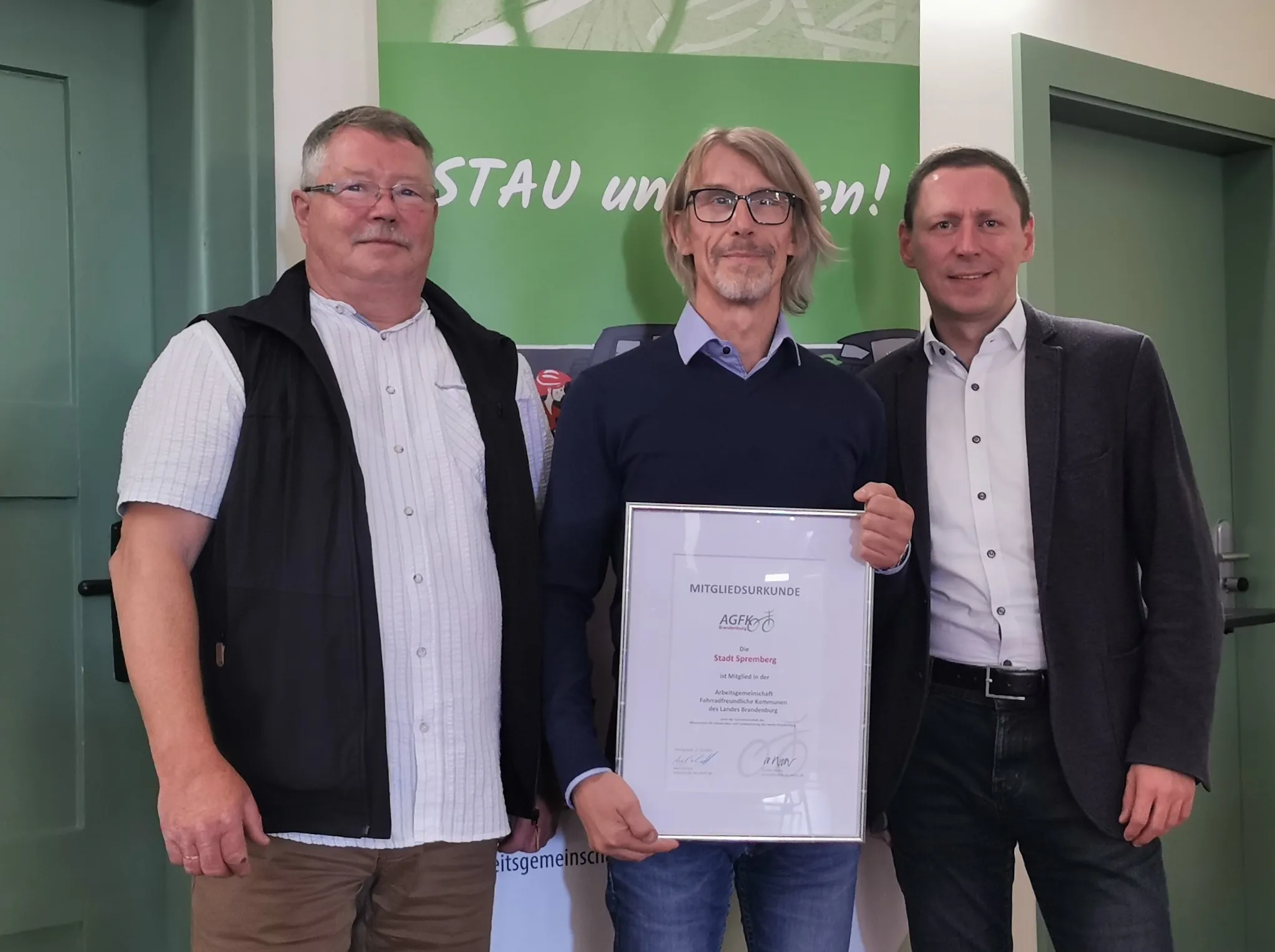 Tim Goetz (Landkreis Oder-Spree) sowie Raik Gallas und Siegfried Jung (Stadt Spremberg) bekommen vom Vorsitzenden die Mitgliedsurkunden überreicht (Fotos: Torsten Wolter, AGFK BB).