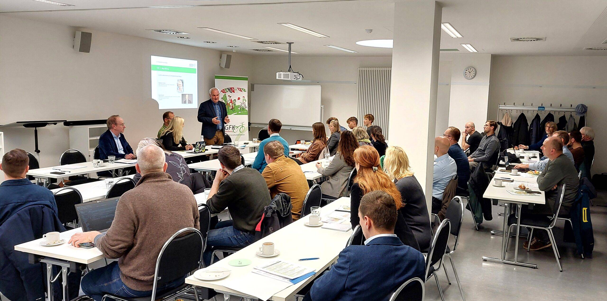 Stephanie Kuntze, amtierende Vorsitzende der AGFK BB, und Bernd Rubelt, gastgebender Beigeordneter der Landeshauptstadt Potsdam, führten durch die Versammlung in der Wissenschaftsetage des Bildungsforums. Den inhaltlichen Schwerpunkt bildete die Vorstellung und Diskussion von aktuellen Projekten, Kampagnen und Aktionen unserer Arbeitsgemeinschaft.