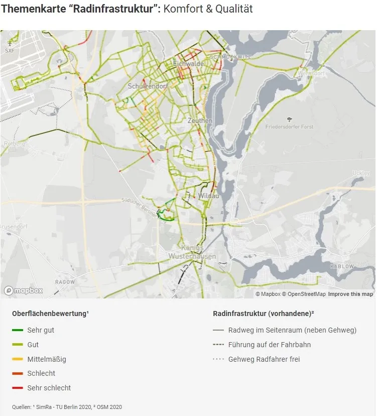 Im Sinne transformativer Wissenschaft werden dabei neue Mechanismen für einen umsetzungsorientierten Planungs- und Beteiligungsprozess zur Förderung des Radverkehrs entwickelt und erprobt. Dabei soll erforscht werden, inwieweit innovative, Open-Source-basierte Datenerhebungs-, Visualisierungsmethoden und Partizipationsinstrumente konsensfördernd sein können. Außerdem werden Grundlagendaten zur Entwicklung der Netzplanung aufbereitet. Dadurch wird die Konzepterstellung maßgeblich unterstützt und die Netzplanung kann besser an den tatsächlichen Bedarfen der Bürger:innen angepasst werden. Neben der Bewertung von räumlichen Parametern, den Verkehrsbedingungen sowie den vorhandenen Radverkehrsanlagen werden dabei (mit SimRa) auch Aspekte der subjektiven Sicherheit und des Fahrkomforts integriert. Das Ergebnis der Klassifizierung wird in Form einer interaktiven Karte dargestellt und auf dieser Seite veröffentlicht.
